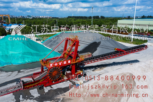該設(shè)備包括行走機(jī)構(gòu);鏈板進(jìn)料裝置;帶式輸送機(jī)系統(tǒng);臂架俯仰機(jī)構(gòu);臂架旋轉(zhuǎn)機(jī)構(gòu);卡車爬坡裝置;液壓系統(tǒng);控制系統(tǒng);配電系統(tǒng)(移動(dòng)式電站)等。全部系統(tǒng)可以在堆場場地內(nèi)移動(dòng),行走機(jī)構(gòu)的行走輪采用重載汽車實(shí)心輪胎,無須在堆場內(nèi)布置固定軌道,增加堆場利用率;進(jìn)料裝置與輸送懸臂集為一體,二者均安裝于一個(gè)公共底盤之上,構(gòu)成一體式移動(dòng)堆高機(jī);臂架俯仰機(jī)構(gòu)采用鋼絲繩俯仰形式,臂架旋轉(zhuǎn)機(jī)構(gòu)采用回轉(zhuǎn)減速電機(jī)和回轉(zhuǎn)軸承,配電系統(tǒng)采用發(fā)電機(jī)組和電纜卷筒供電,整個(gè)系統(tǒng)具有完整地獨(dú)立性。