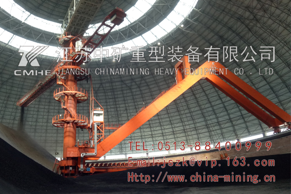圓形料場堆取料機是懸臂堆料機與刮板取料機集于一體設備,是一種大型、環(huán)保、連續(xù)、 高效的散料裝卸機械,實用于碼頭、鋼鐵廠、水泥廠、大型火力發(fā)電廠和礦山等,可以裝卸鐵礦石(砂)、煤炭、砂子、石灰石、水泥等,圓形堆取料機被半球形網(wǎng)架外殼所籠罩,堆取料作業(yè)時集中于定心旋轉的回轉范圍內,不受臺風等惡劣天氣的影響,同時產生的揚塵范圍小,又被拘囿在固定的區(qū)域內,所以,它很好地解決了常規(guī)的敞開式條形煤場堆取料機作業(yè)時所產生的大量揚塵對周邊環(huán)境造成的大范圍污染,既美觀又環(huán)保,綜合效益高,具備儲料量大、占地面積小、場地利用率高、安全可靠性高、環(huán)保效益好等優(yōu)點。取料和堆料作業(yè)時具備兩個層次分明的堆料回轉機構和取料回轉機構,使堆料機和取料機形成兩套互不干涉、相對獨立的運行系統(tǒng),實現(xiàn)同時進行堆料和取料作業(yè)。我司目前有圓形堆取料機軌道直45m-120m各種規(guī)格。