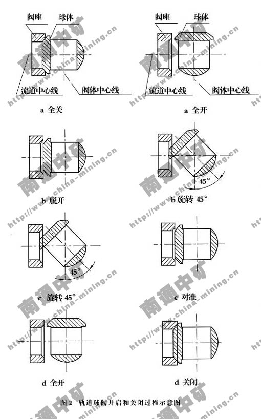 在關(guān)閉的狀態(tài)下,當執(zhí)行機構(gòu)帶動閥桿向上運動,其閥桿底部的角形平面使球體密封面傾離閥座,閥桿繼續(xù)提升并與閥桿螺旋槽內(nèi)的導銷相互作用,使球體開始無摩擦旋轉(zhuǎn)90°直至閥桿提升位置,球體通孔對準閥門通道。