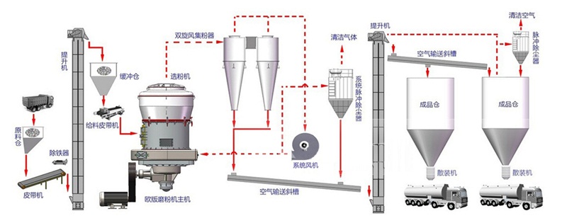 歐版磨制備石灰石粉工藝流程工藝說(shuō)明