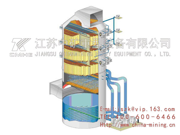 (10)布置靈活多樣:江蘇中礦擁有立式濕電除塵器和臥式濕電除塵器的成功工程經(jīng)驗(yàn),根據(jù)煙氣特性、排放要求、現(xiàn)場場地情況,靈活按立式和臥式來布置,也可將濕式電除塵器布置在脫硫塔的上部(頂置式),以節(jié)省場地。